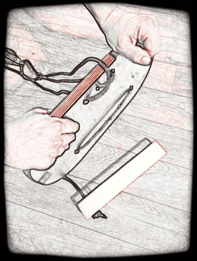Bei zusätzlicher Verwendung des Balance-Holzes, kannst du auch einfache Übungen, wie z.B. Rudern im Parallelstand, Bizepscurls, Schulterpresse etc. aus verschiedenen Trainingstools koordinativ massiv verstärken und erreichst so intensiver deine Tiefenmuskulatur. Setze es zur Benutzung so mittig unter das Board, dass du es unten zuerst durch die Fußschlaufe bis vor durch die unteren Seilschlaufe des Stellseils steckst. So wird das Balance-Holz recht gut fixiert und du wippst fußbodenschonend auf den Seilen. Während der Übung versuche möglichst nicht zu viel hin und her zu kippeln, also balanciere dich mittig aus. Du wirst merken, wie anstrengend das mit der eigentlichen Kraftübung zusammen ist.