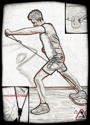 Unwohlsein verringere die Gegenkraft, oder brich das Training ab. Beobachte die Seilrolle! Sie sollte