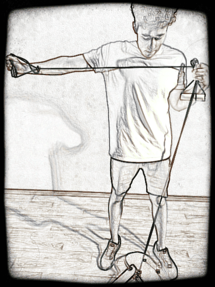 Stelle dich entsprechend des Bildes auf das Board. Nimm die Übungsausgangsposition (in dem Fall ein Arm maximal gebeugt der andere max. gestreckt) ein. Lass die Ellenbogen am Körper. Stelle dir jetzt die Trainingsseillänge über das Stellseil so ein, dass du in dieser Position gut Spannung auf dem Trainingsseil hast. Führe die Übung (hier das Bsp.: Bizepscurls) erst einmal locker ohne viel Kraft in gleichmäßiger Geschwindigkeit ca. 2-3 Sek. pro Arm aus (später kannst du bei bestimmten Trainingszielen auch schneller trainieren). Achte auf den richtigen Bewegungsverlauf (von voller Beugung zur vollen Streckung), halte dabei die Trainingsseile immer straff. Wenn das gut klappt, kannst du anfangen die Gegenkraft (z.B. durch das stärkere Gegenhalten des anderen Arms) weiter aufzubauen. Verstärke sie solange, bis du es kaum noch schaffst. Jetzt weißt du, wie du richtig und maximal steuern kannst. Sollte es anfänglich bei dir noch nicht so flüssig funktionieren, keine Angst, du wirst es schnell lernen, bald hast du das richtige Bewegungsgefühl entwickelt und kannst die Kraft perfekt steuern. Ein bisschen Übung gehört am Anfang dazu! In deinen von uns empfohlenen Trainingsplänen (Button 2-10) findest du später immer eine Wiederholungszahl (WH), die solltest du dir so steuern, dass du sie gerade so erreichst. Achte immer darauf, in Belastung auszuatmen. Halte die Gegenspannung ständig über die gesamte Bewegungsamplitude aufrecht, achte auf die richtige Haltung und auf eine Ganzkörperspannung. Bei Schmerzen, das Training sofort abbrechen!