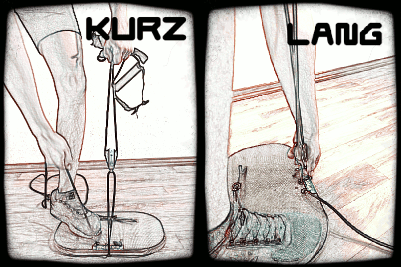 sollte die Seiten des Seil-Dreiecks zwischen Griff und Stellring jeweils mindestens bei 15 cm